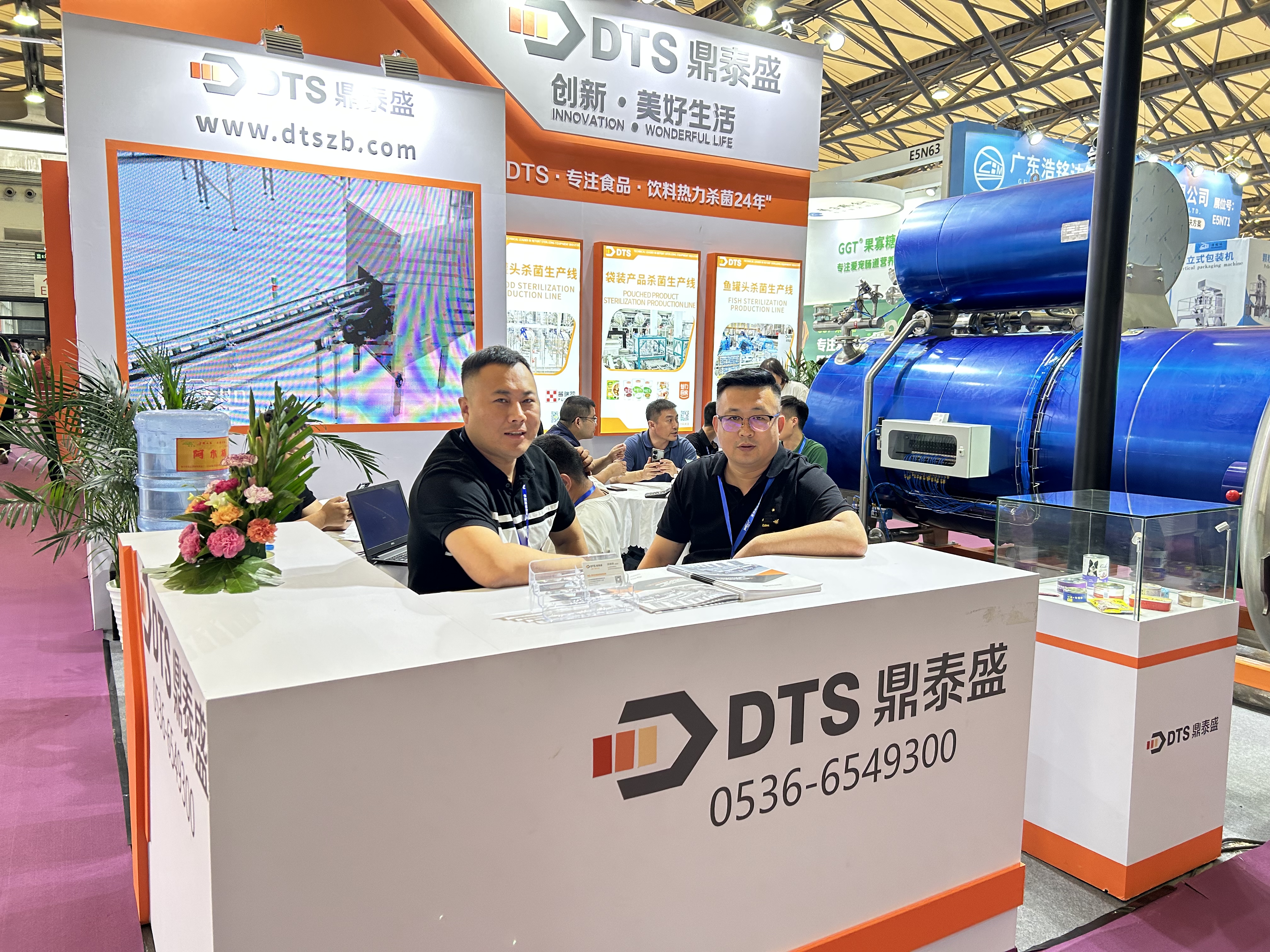 在展覽會上,我們為客戶展示了最新的寵物食品殺菌設備,以及幫助來訪客戶解決了對于寵物食品殺菌提出的相關問題。鼎泰盛主要產品有殺菌釜和物料處理自動化設備和系統,在寵物食品領域適用于寵物罐頭、妙鮮包、寵物糧、貓條等寵物食品的殺菌。自2001年以來,鼎泰盛已經向全世界39個國家提供了食品飲料殺菌整線交鑰匙工程100+條,批次式殺菌釜單機6000+臺。